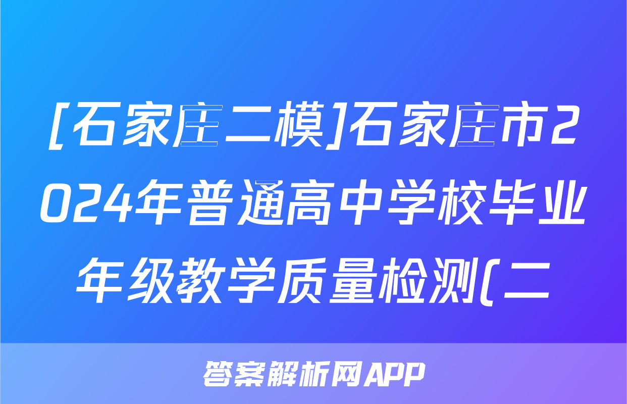 [石家庄二模]石家庄市2024年普通高中学校毕业年级教学质量检测(二)理数答案正在持续更新,目前大联考答案为大家整理了相关试题及答案,供大家查缺补漏,高效提升成绩。