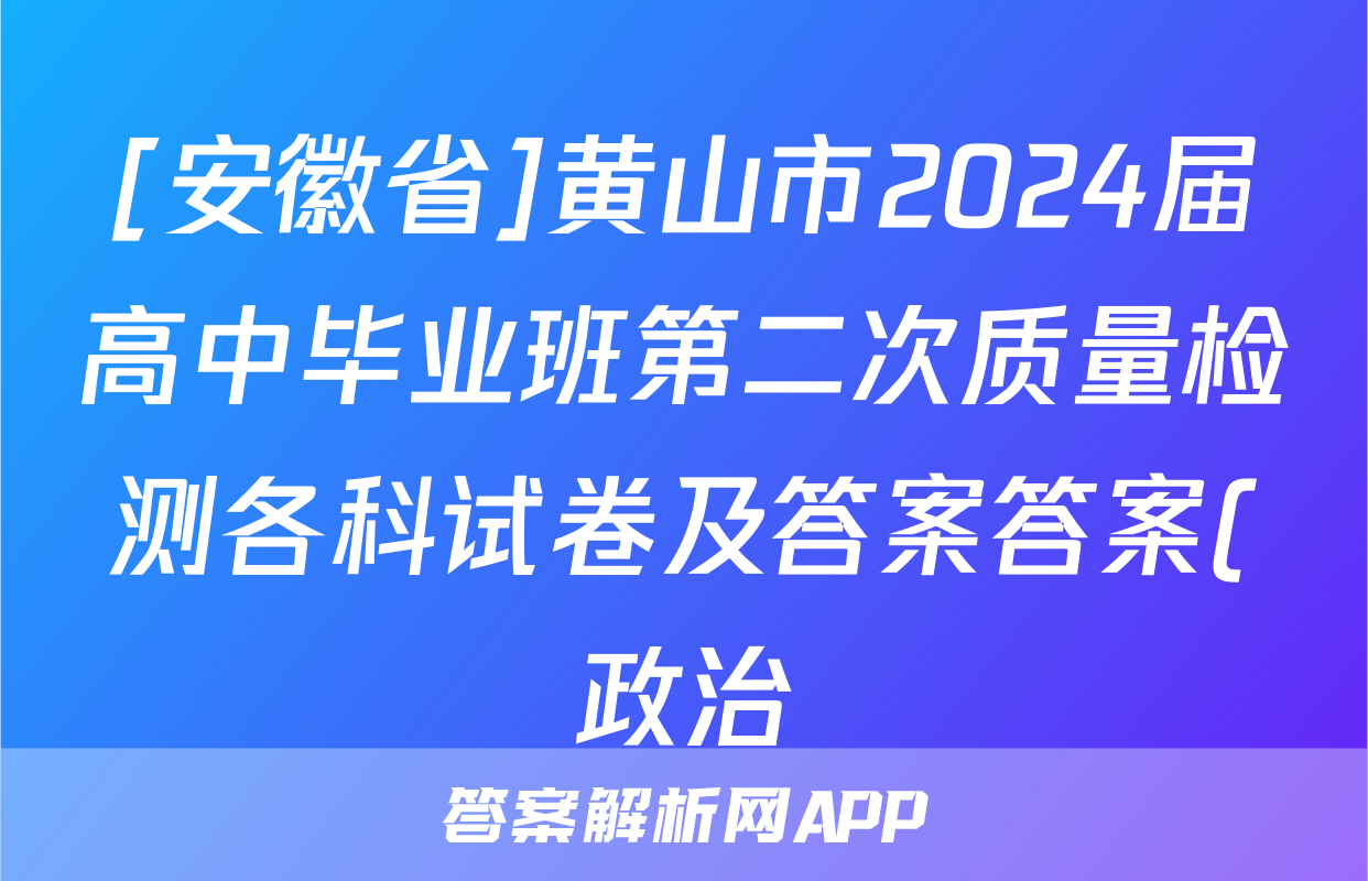 [安徽省]黄山市2024届高中毕业班第二次质量检测各科试卷及答案答案(政治)正在持续更新,目前大联考答案为大家整理了相关试题及答案,供大家查缺补漏,高效提升成绩。