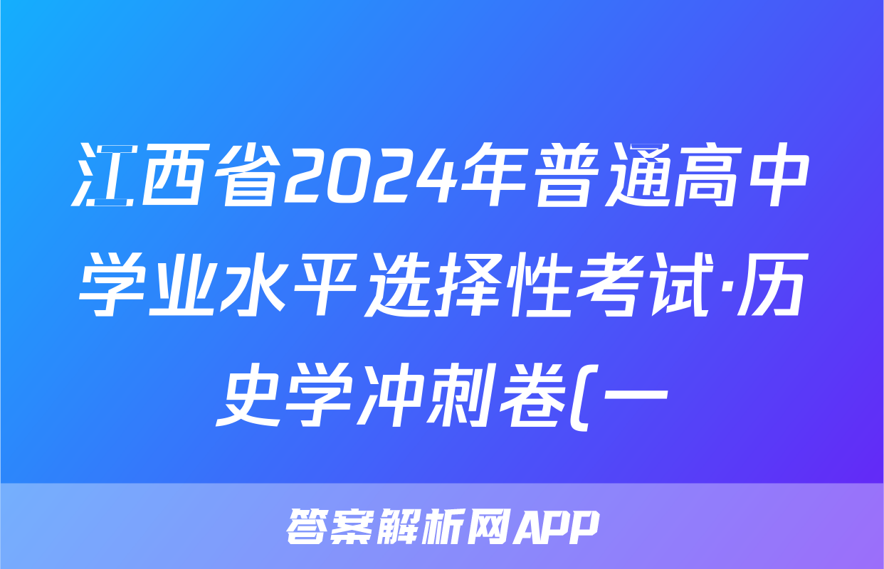 江西省2024年普通高中学业水平选择性考试·历史学冲刺卷(一)1[24·(新高考)CCJ·历史学·JX]答案正在持续更新,目前大联考答案为大家整理了相关试题及答案,供大家查缺补漏,高效提升成绩。