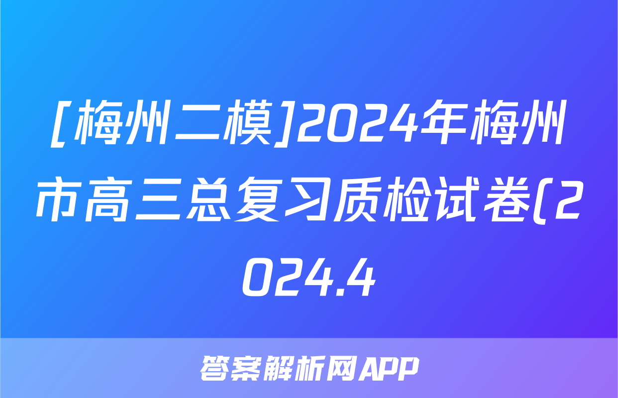 [梅州二模]2024年梅州市高三总复习质检试卷(2024.4)试题(英语)正在持续更新,目前大联考答案为大家整理了相关试题及答案,供大家查缺补漏,高效提升成绩。