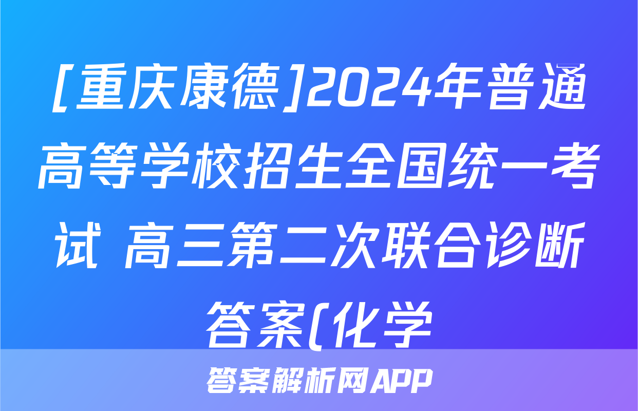[重庆康德]2024年普通高等学校招生全国统一考试 高三第二次联合诊断答案(化学)正在持续更新,目前大联考答案为大家整理了相关试题及答案,供大家查缺补漏,高效提升成绩。