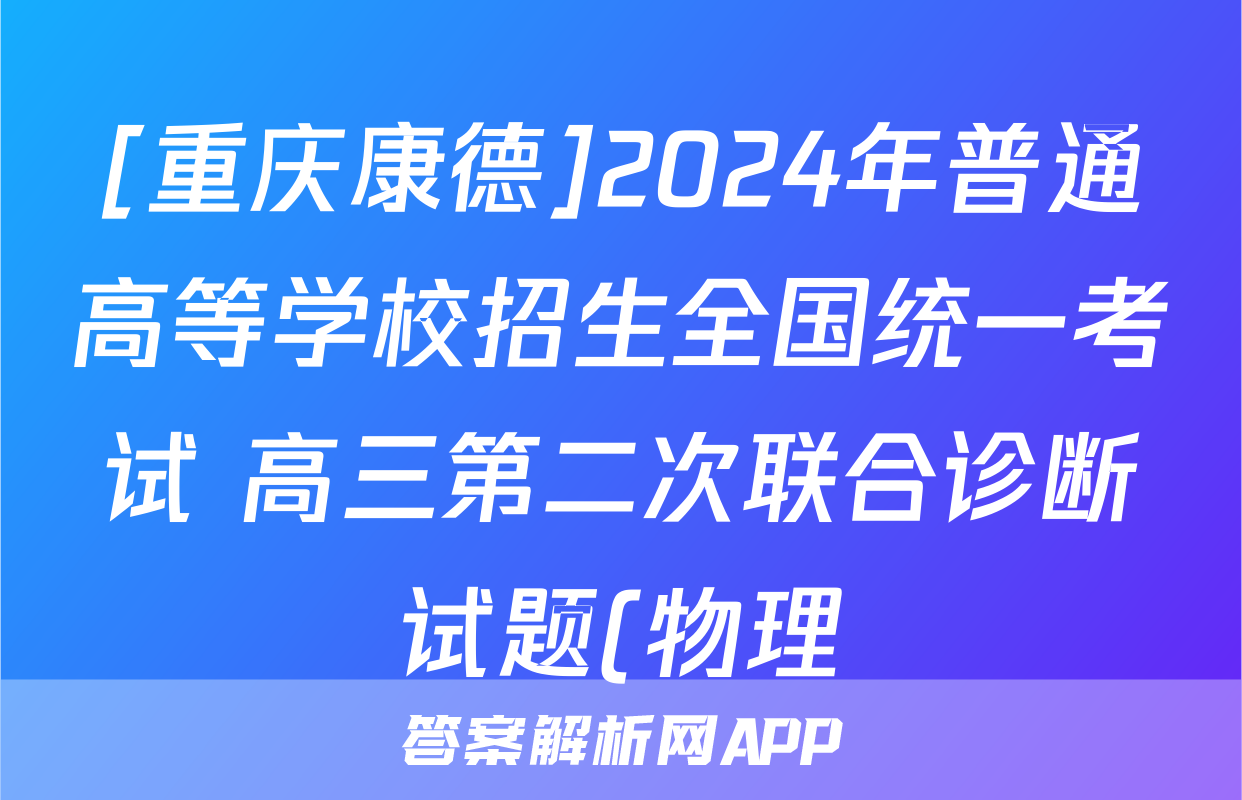 [重庆康德]2024年普通高等学校招生全国统一考试 高三第二次联合诊断试题(物理)正在持续更新,目前大联考答案为大家整理了相关试题及答案,供大家查缺补漏,高效提升成绩。