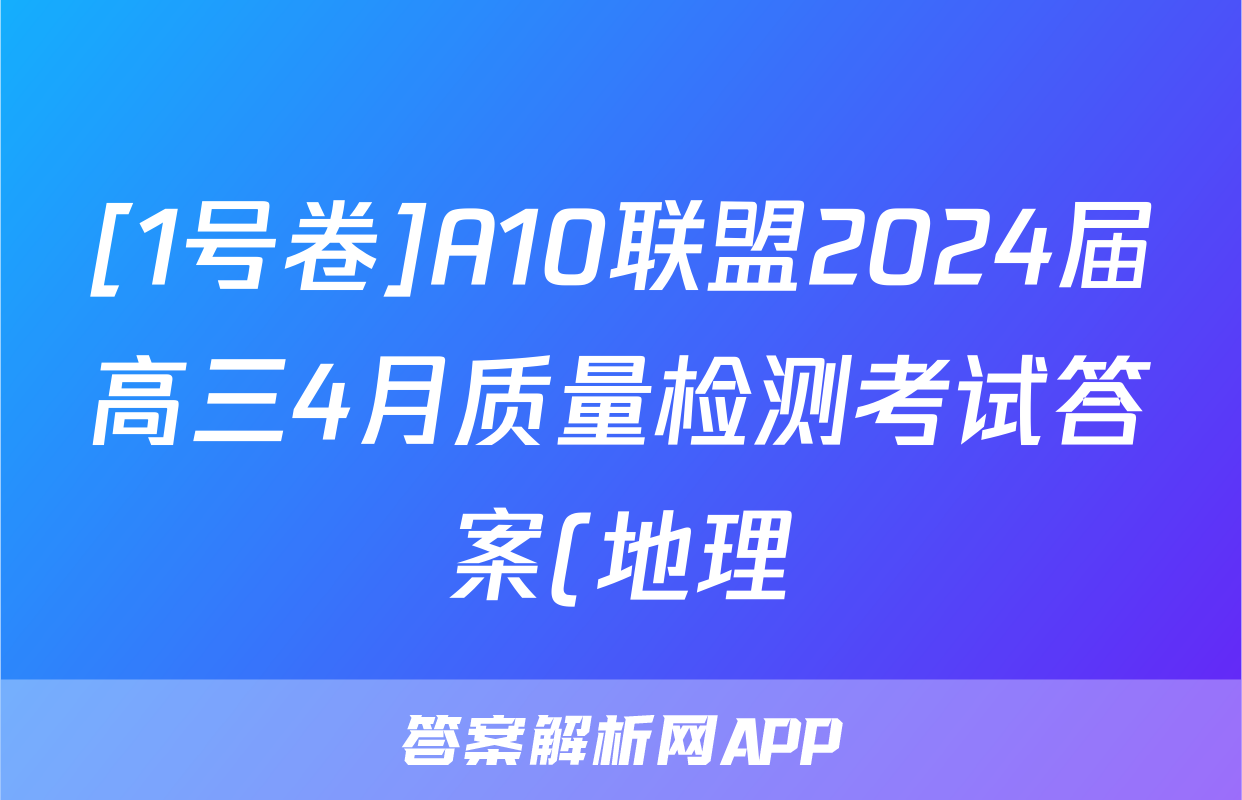 [1号卷]A10联盟2024届高三4月质量检测考试答案(地理)正在持续更新,目前大联考答案为大家整理了相关试题及答案,供大家查缺补漏,高效提升成绩。