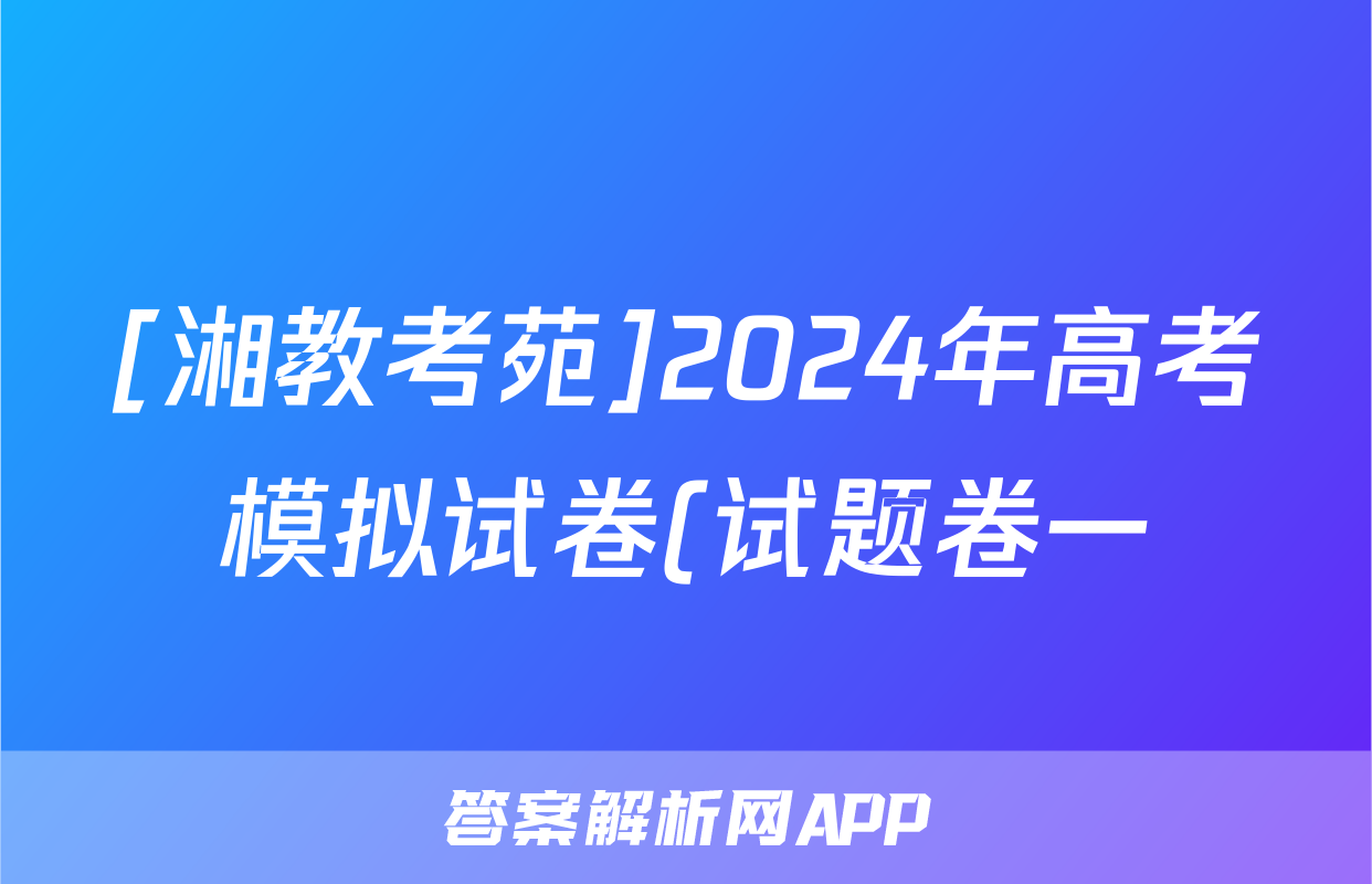 [湘教考苑]2024年高考模拟试卷(试题卷一)试题(政治)正在持续更新,目前大联考答案为大家整理了相关试题及答案,供大家查缺补漏,高效提升成绩。