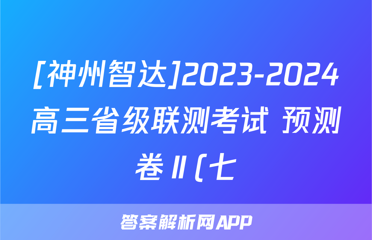 [神州智达]2023-2024高三省级联测考试 预测卷Ⅱ(七)7语文试题正在持续更新,目前大联考答案为大家整理了相关试题及答案,供大家查缺补漏,高效提升成绩。