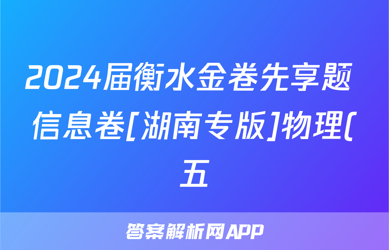 2024届衡水金卷先享题 信息卷[湖南专版]物理(五)5试题