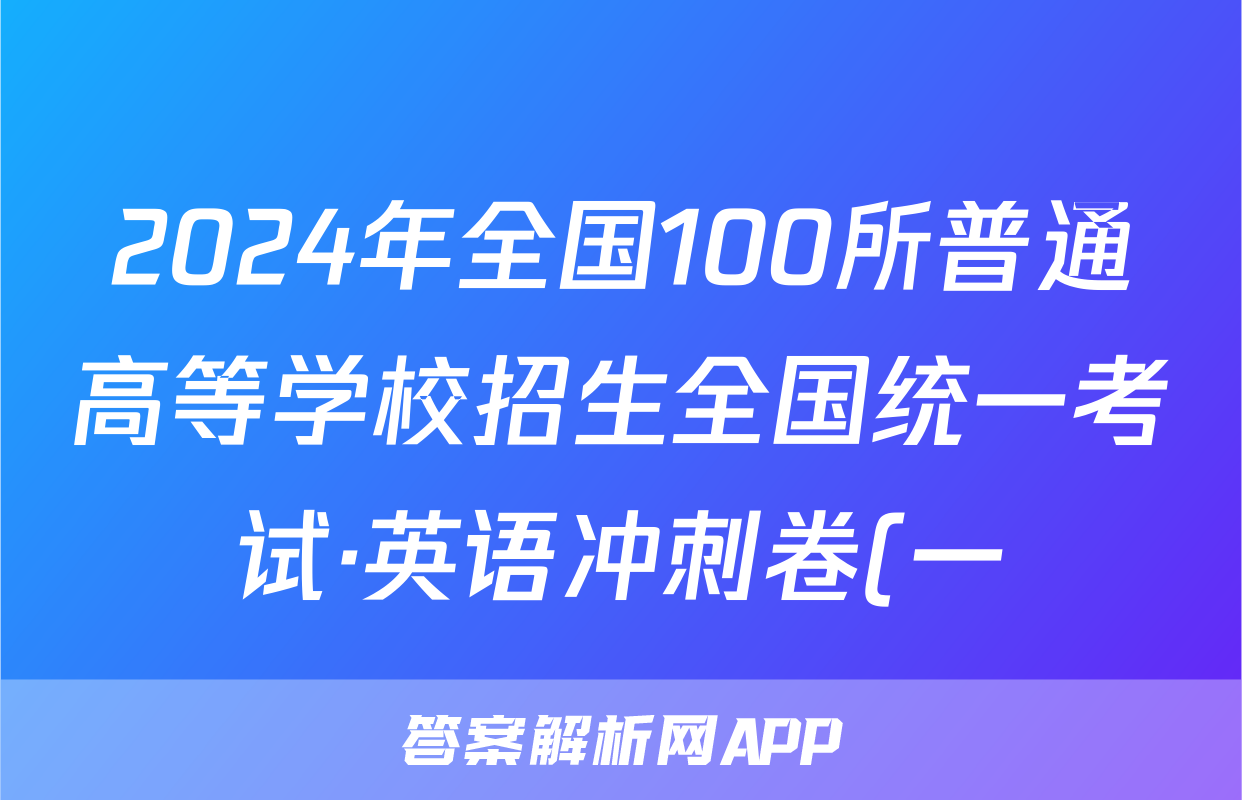 2024年全国100所普通高等学校招生全国统一考试·英语冲刺卷(一)1[24·(新高考)CCJ·英语·Y]答案正在持续更新,目前大联考答案为大家整理了相关试题及答案,供大家查缺补漏,高效提升成绩。