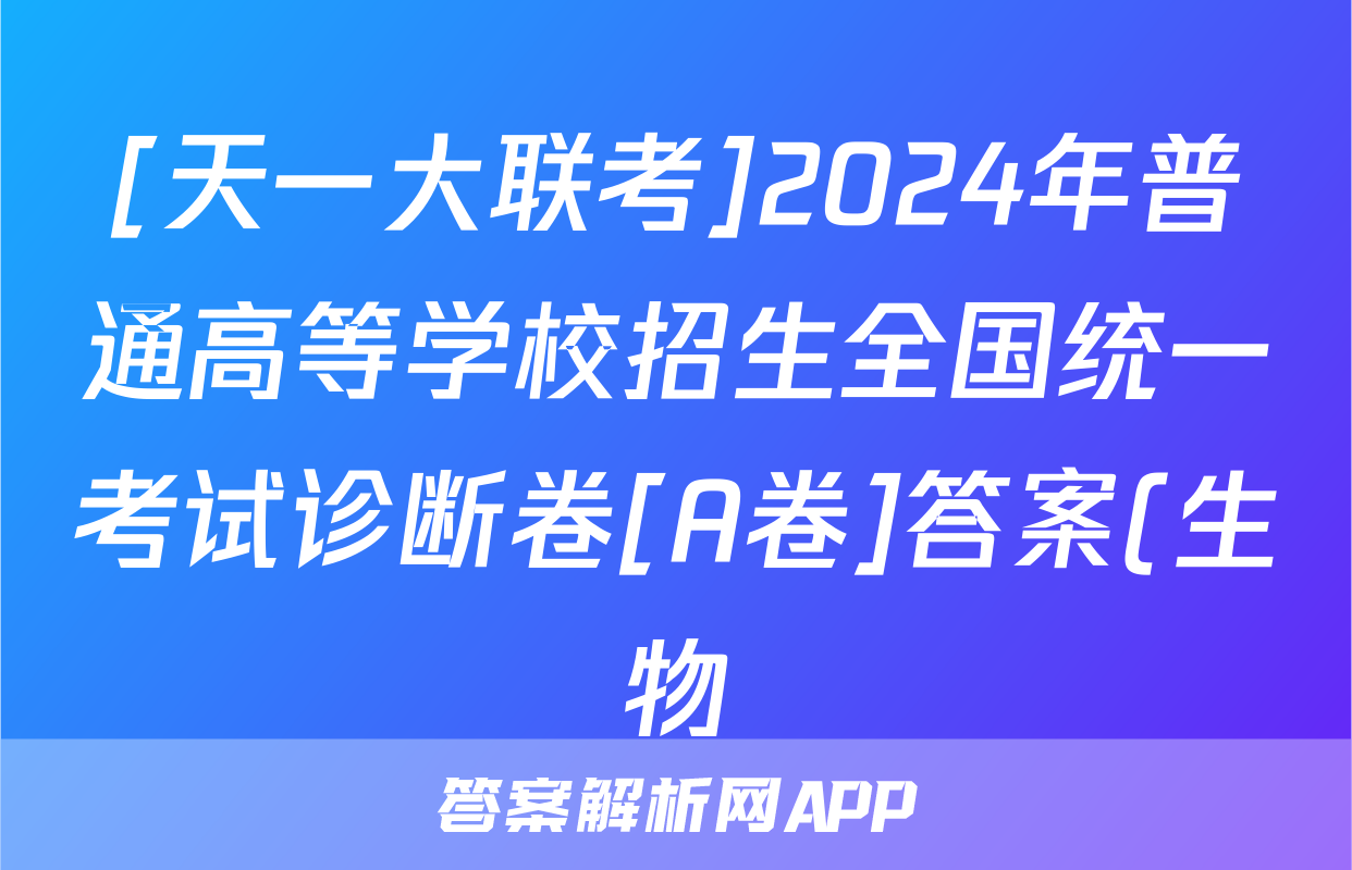 [天一大联考]2024年普通高等学校招生全国统一考试诊断卷[A卷]答案(生物)正在持续更新,目前大联考答案为大家整理了相关试题及答案,供大家查缺补漏,高效提升成绩。