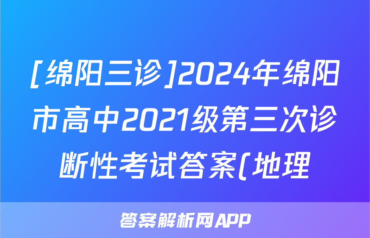 [绵阳三诊]2024年绵阳市高中2021级第三次诊断性考试答案(地理)正在持续更新,目前大联考答案为大家整理了相关试题及答案,供大家查缺补漏,高效提升成绩。