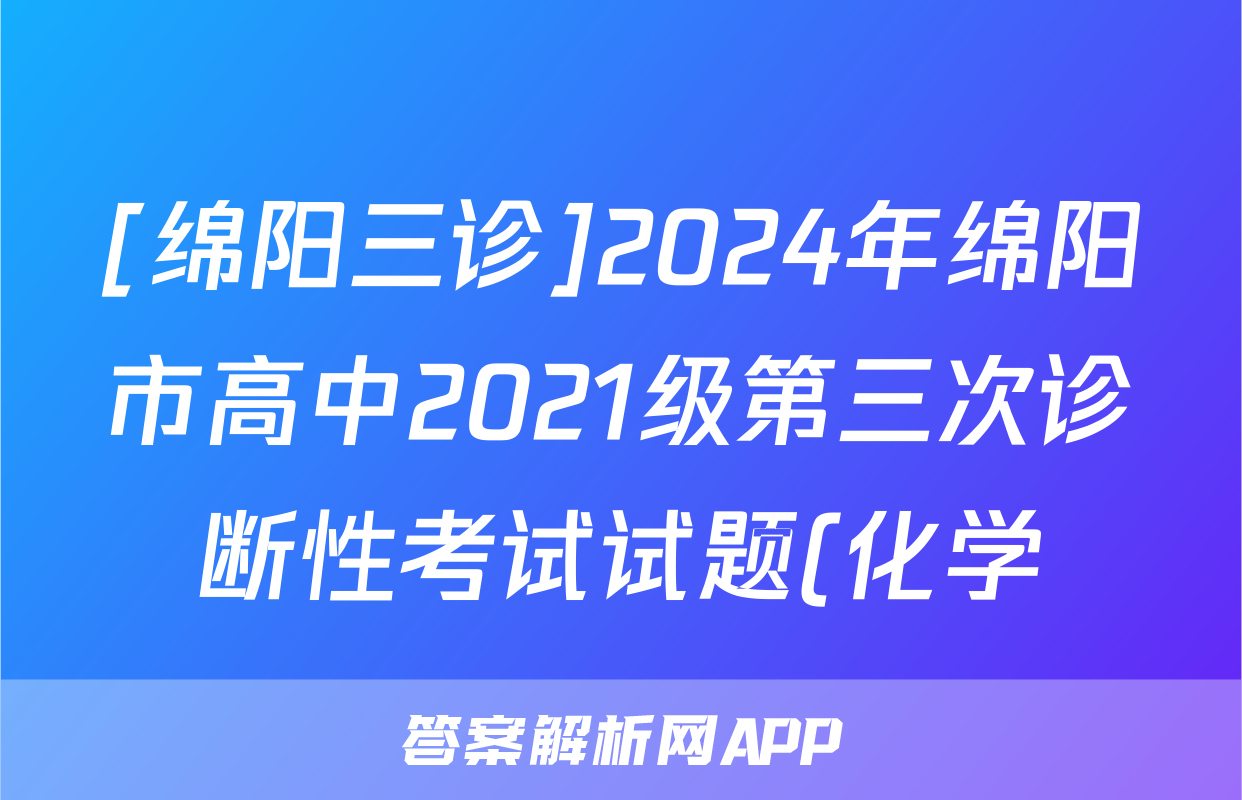 [绵阳三诊]2024年绵阳市高中2021级第三次诊断性考试试题(化学)正在持续更新,目前大联考答案为大家整理了相关试题及答案,供大家查缺补漏,高效提升成绩。
