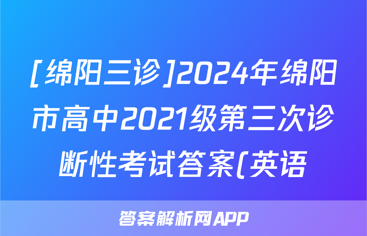 [绵阳三诊]2024年绵阳市高中2021级第三次诊断性考试答案(英语)正在持续更新,目前大联考答案为大家整理了相关试题及答案,供大家查缺补漏,高效提升成绩。