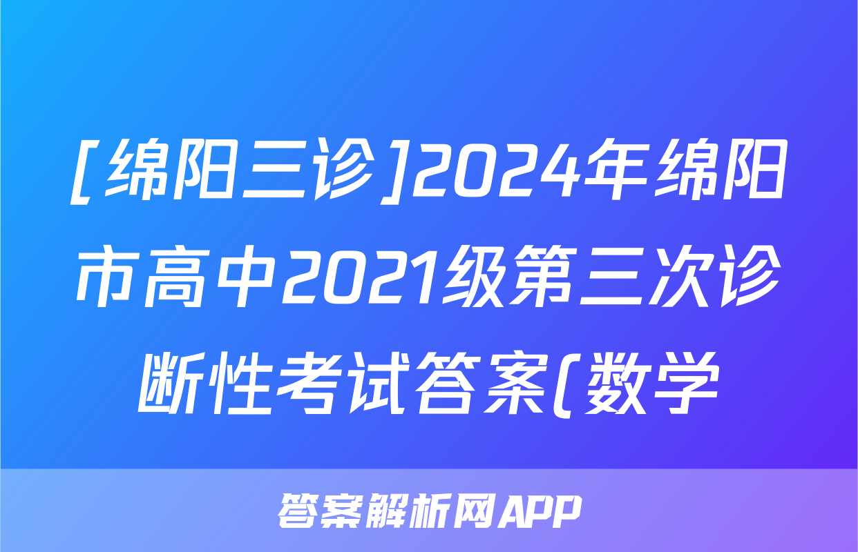[绵阳三诊]2024年绵阳市高中2021级第三次诊断性考试答案(数学)正在持续更新,目前大联考答案为大家整理了相关试题及答案,供大家查缺补漏,高效提升成绩。