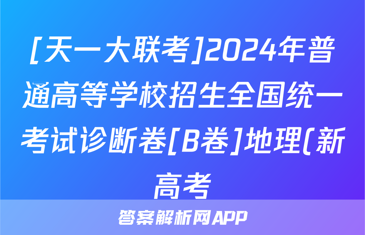 [天一大联考]2024年普通高等学校招生全国统一考试诊断卷[B卷]地理(新高考)答案正在持续更新,目前大联考答案为大家整理了相关试题及答案,供大家查缺补漏,高效提升成绩。