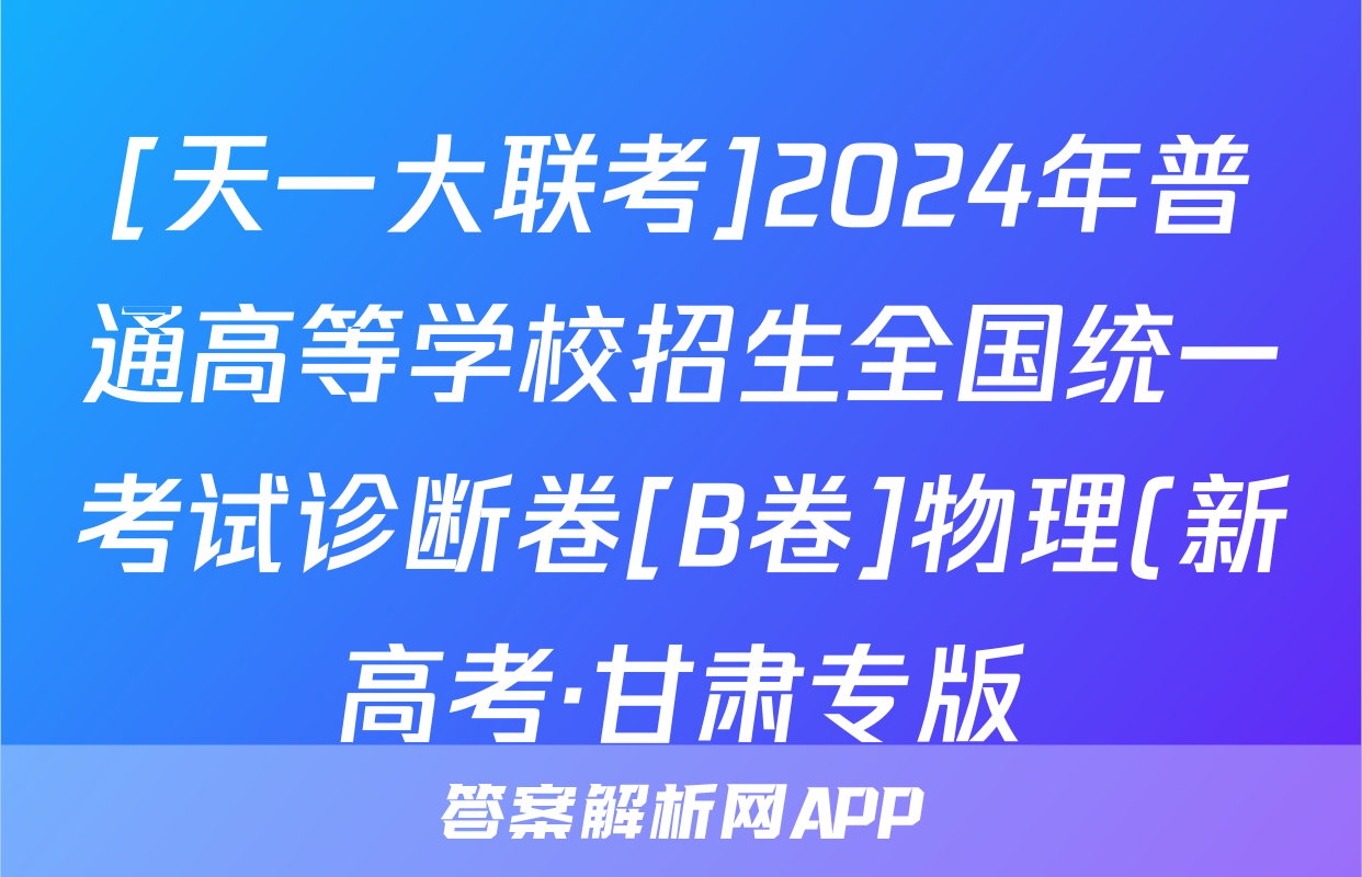 [天一大联考]2024年普通高等学校招生全国统一考试诊断卷[B卷]物理(新高考·甘肃专版)答案正在持续更新,目前大联考答案为大家整理了相关试题及答案,供大家查缺补漏,高效提升成绩。