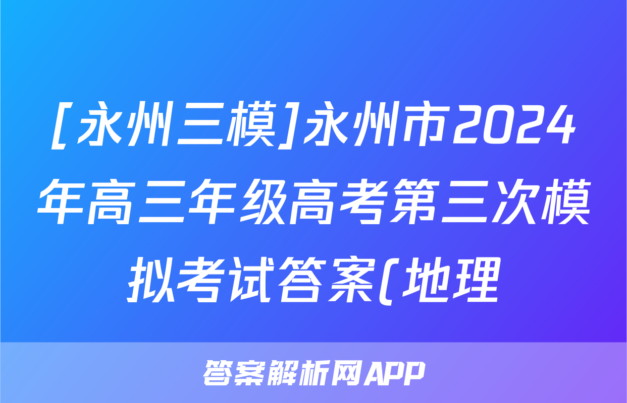 [永州三模]永州市2024年高三年级高考第三次模拟考试答案(地理)正在持续更新,目前大联考答案为大家整理了相关试题及答案,供大家查缺补漏,高效提升成绩。