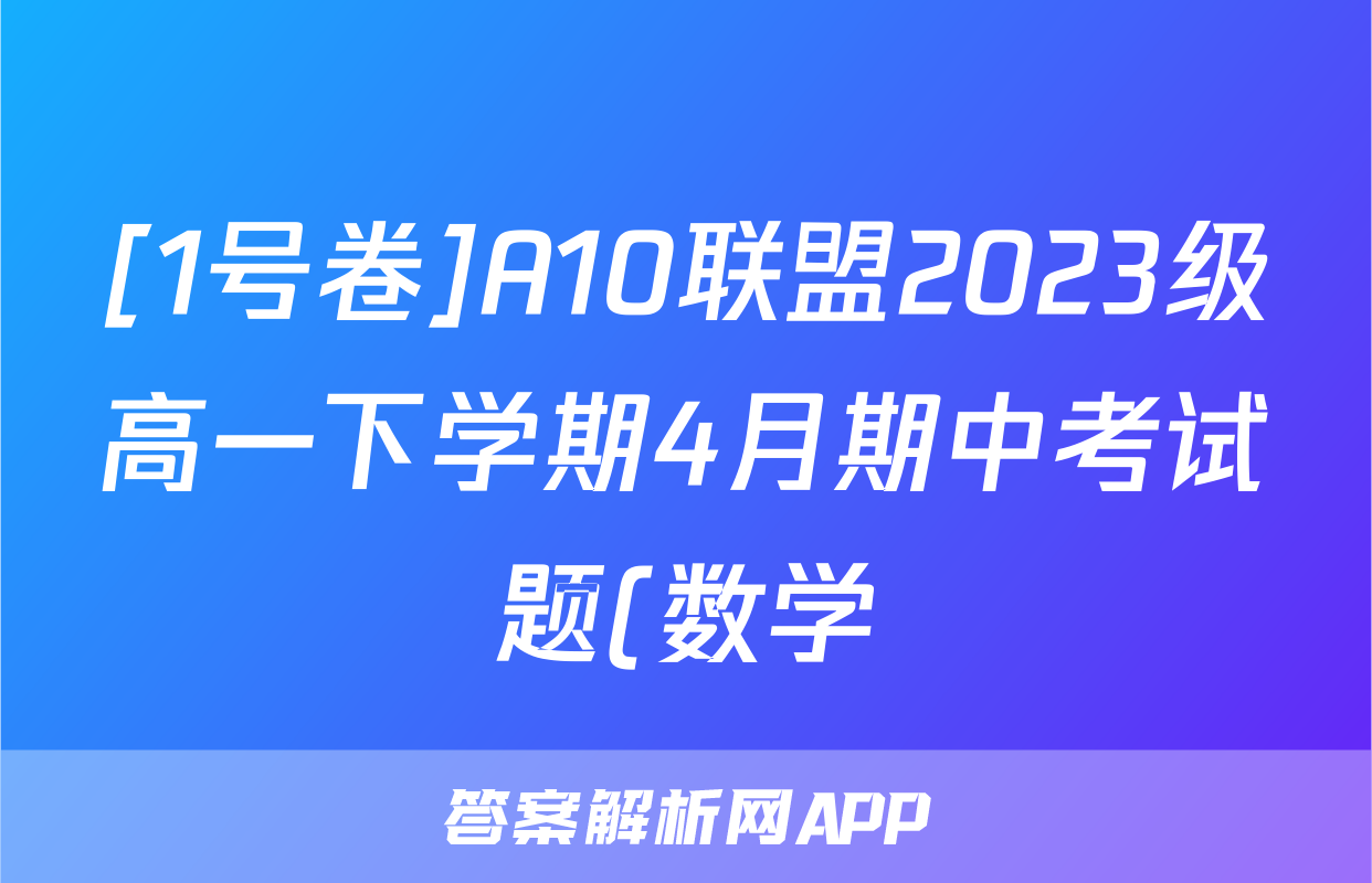 [1号卷]A10联盟2023级高一下学期4月期中考试题(数学)正在持续更新,目前大联考答案为大家整理了相关试题及答案,供大家查缺补漏,高效提升成绩。