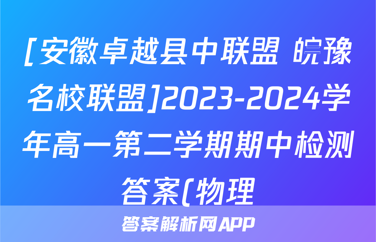 [安徽卓越县中联盟 皖豫名校联盟]2023-2024学年高一第二学期期中检测答案(物理)正在持续更新,目前大联考答案为大家整理了相关试题及答案,供大家查缺补漏,高效提升成绩。