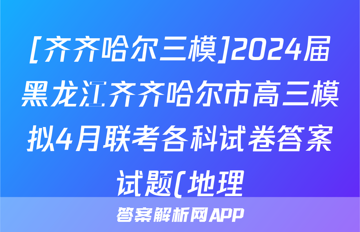 [齐齐哈尔三模]2024届黑龙江齐齐哈尔市高三模拟4月联考各科试卷答案试题(地理)正在持续更新,目前大联考答案为大家整理了相关试题及答案,供大家查缺补漏,高效提升成绩。