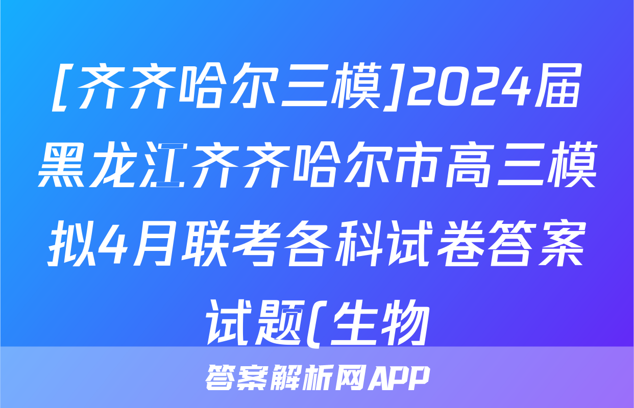 [齐齐哈尔三模]2024届黑龙江齐齐哈尔市高三模拟4月联考各科试卷答案试题(生物)正在持续更新,目前大联考答案为大家整理了相关试题及答案,供大家查缺补漏,高效提升成绩。