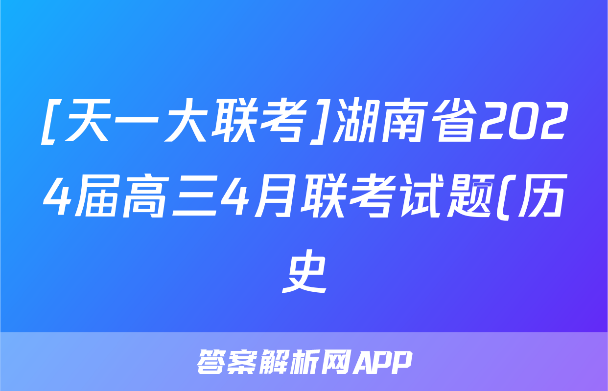 [天一大联考]湖南省2024届高三4月联考试题(历史)正在持续更新,目前大联考答案为大家整理了相关试题及答案,供大家查缺补漏,高效提升成绩。