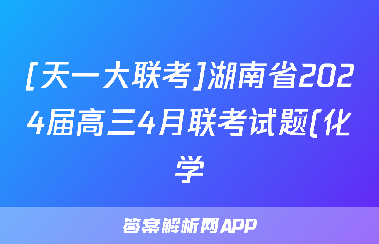 [天一大联考]湖南省2024届高三4月联考试题(化学)正在持续更新,目前大联考答案为大家整理了相关试题及答案,供大家查缺补漏,高效提升成绩。