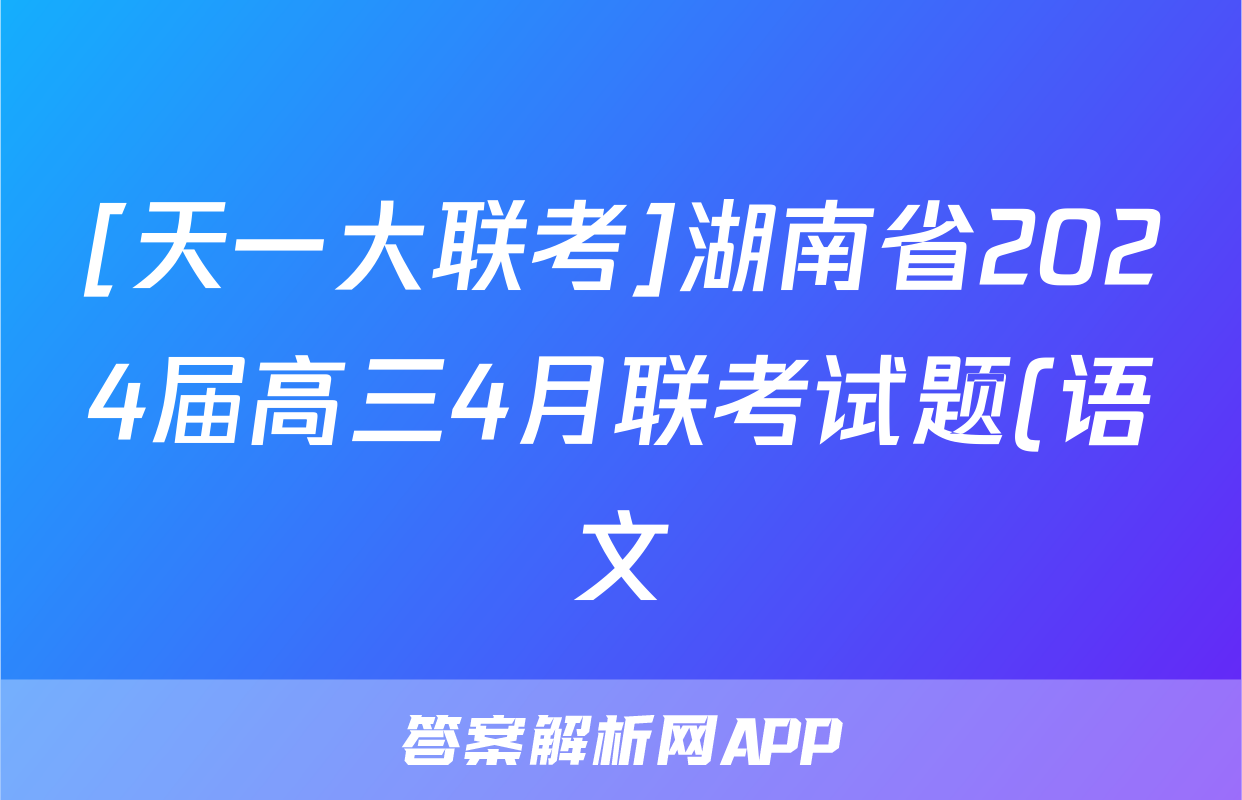 [天一大联考]湖南省2024届高三4月联考试题(语文)正在持续更新,目前大联考答案为大家整理了相关试题及答案,供大家查缺补漏,高效提升成绩。