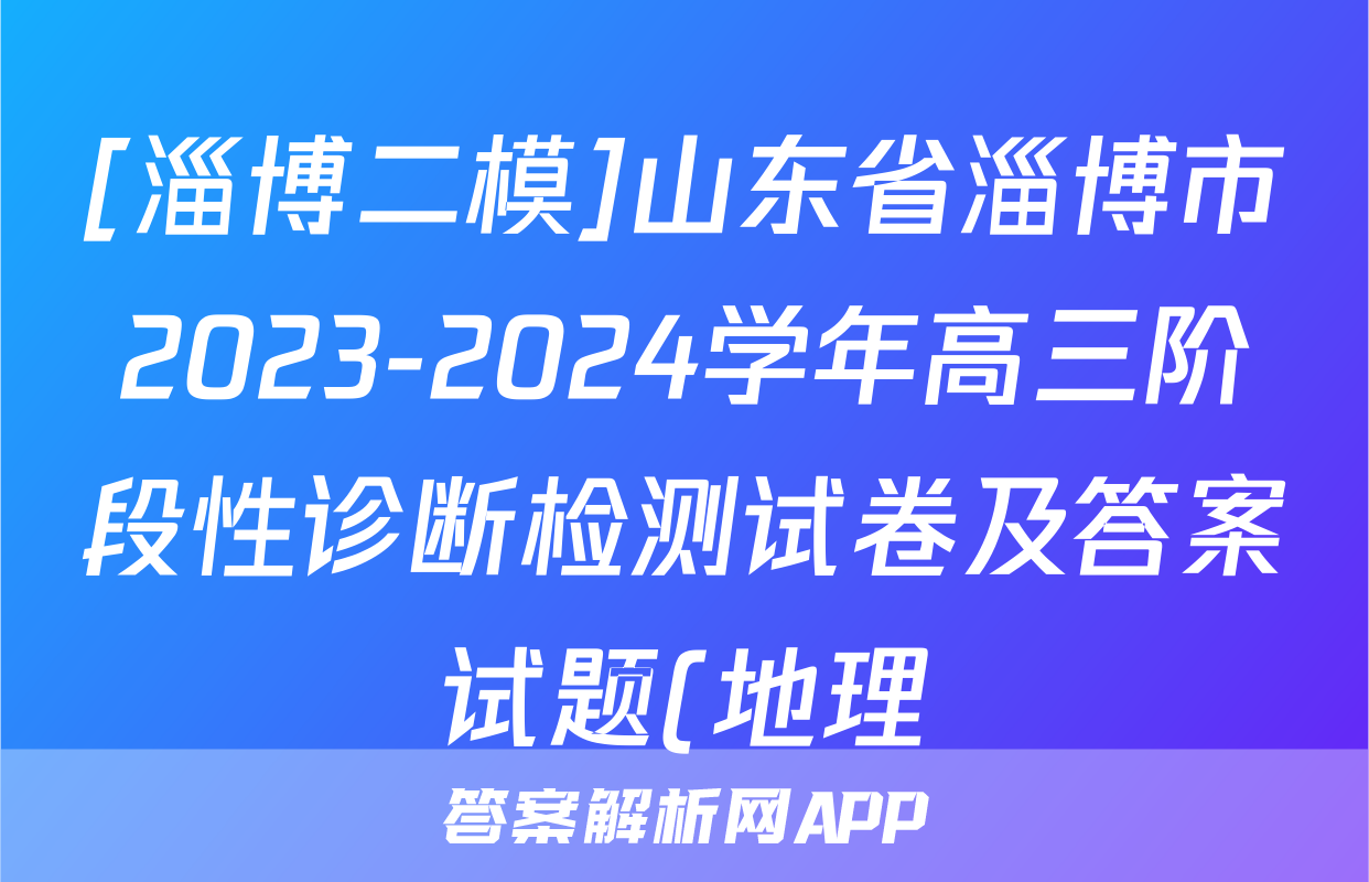 [淄博二模]山东省淄博市2023-2024学年高三阶段性诊断检测试卷及答案试题(地理)正在持续更新,目前大联考答案为大家整理了相关试题及答案,供大家查缺补漏,高效提升成绩。