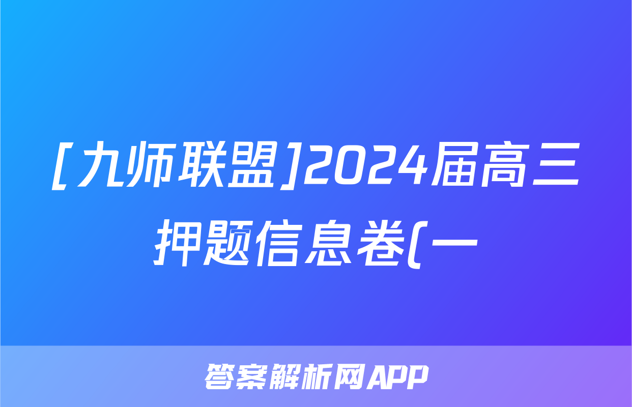 1、九师联盟2023-2024学年高三押题信息卷化学