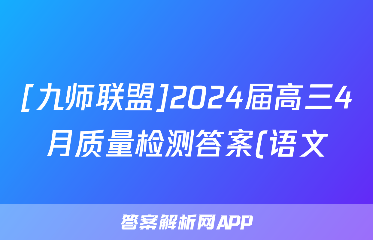 [九师联盟]2024届高三4月质量检测答案(语文)正在持续更新,目前大联考答案为大家整理了相关试题及答案,供大家查缺补漏,高效提升成绩。