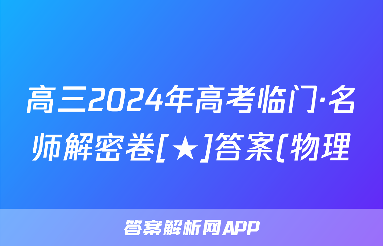 高三2024年高考临门·名师解密卷[★]答案(物理)正在持续更新,目前大联考答案为大家整理了相关试题及答案,供大家查缺补漏,高效提升成绩。