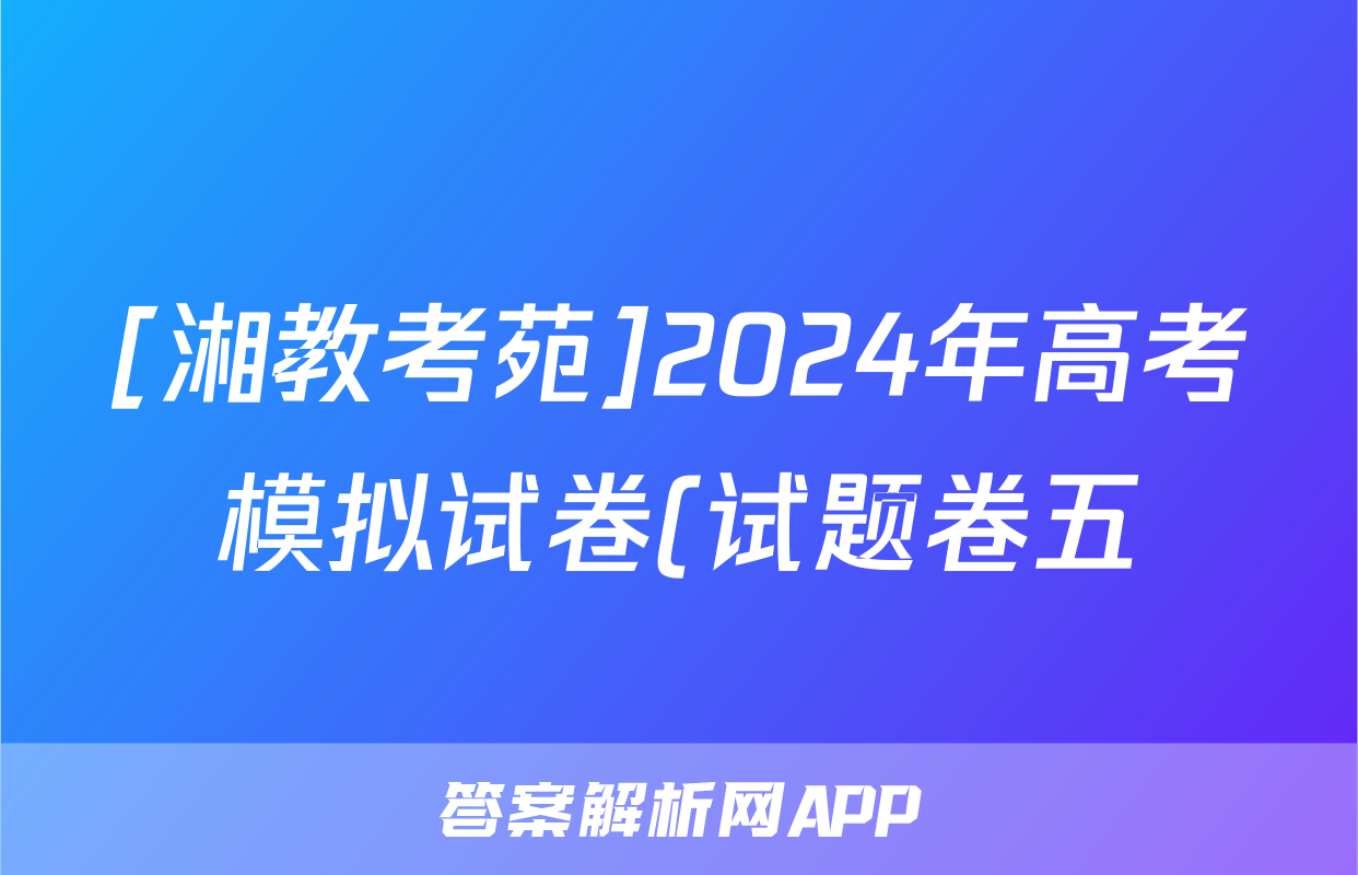 [湘教考苑]2024年高考模拟试卷(试题卷五)试题(历史)正在持续更新,目前大联考答案为大家整理了相关试题及答案,供大家查缺补漏,高效提升成绩。