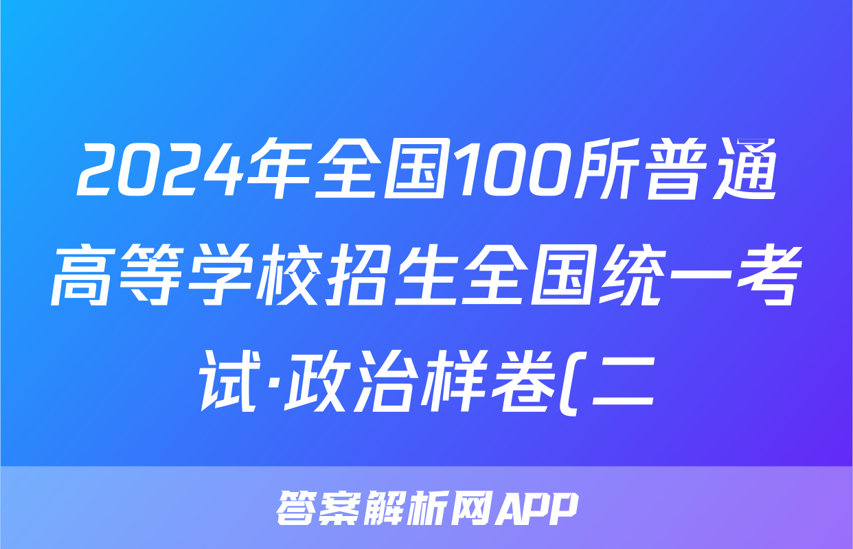 2024年全国100所普通高等学校招生全国统一考试·政治样卷(二)2[24·(新高考)高考样卷·政治·Y]试题正在持续更新,目前大联考答案为大家整理了相关试题及答案,供大家查缺补漏,高效提升成绩。