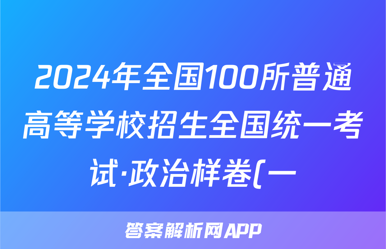 2024年全国100所普通高等学校招生全国统一考试·政治样卷(一)1[24·(新高考)高考样卷·政治·Y]答案正在持续更新,目前大联考答案为大家整理了相关试题及答案,供大家查缺补漏,高效提升成绩。