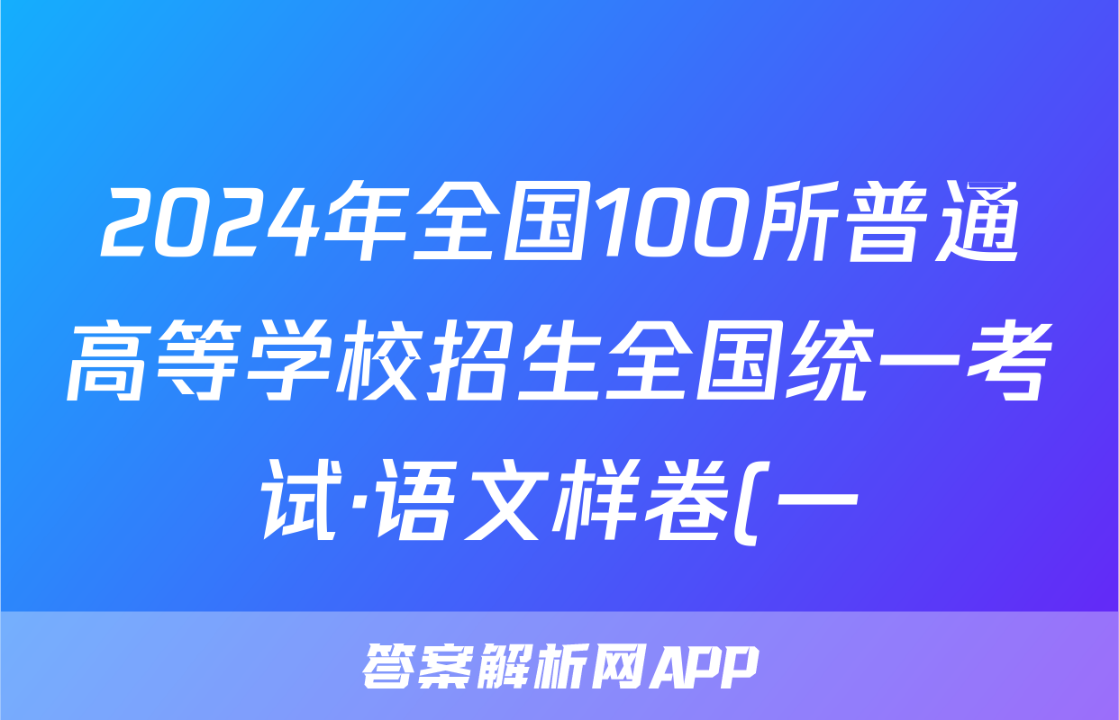 2024年全国100所普通高等学校招生全国统一考试·语文样卷(一)1[24·(新高考)高考样卷·语文·Y]答案正在持续更新,目前大联考答案为大家整理了相关试题及答案,供大家查缺补漏,高效提升成绩。