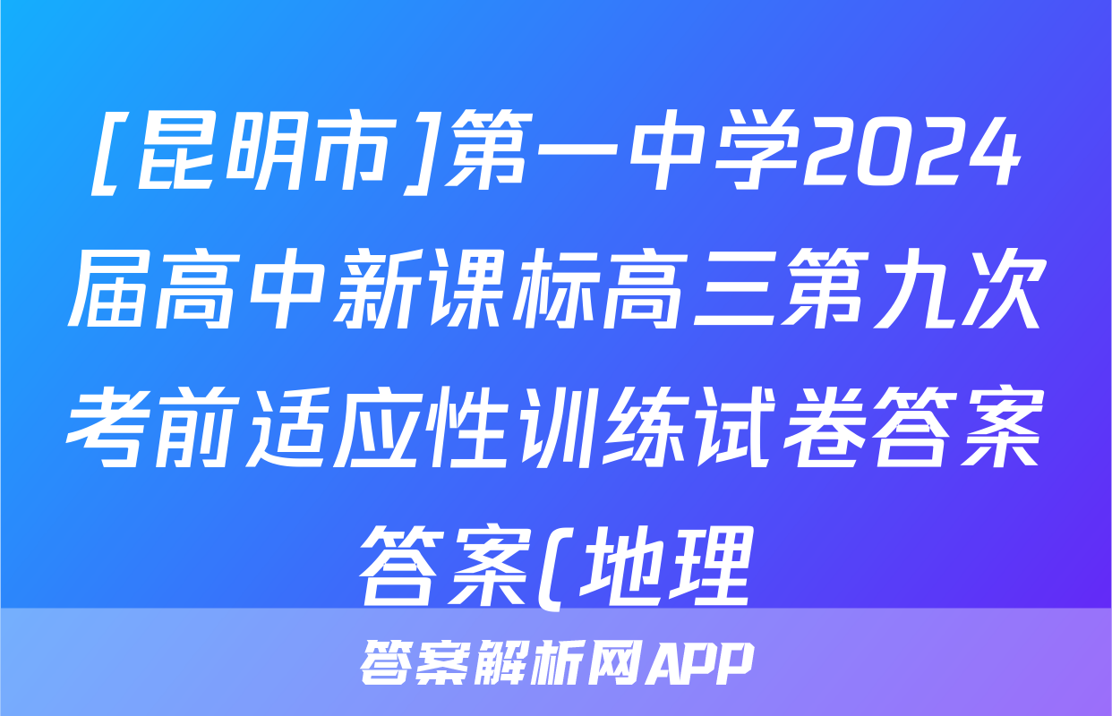 [昆明市]第一中学2024届高中新课标高三第九次考前适应性训练试卷答案答案(地理)正在持续更新,目前大联考答案为大家整理了相关试题及答案,供大家查缺补漏,高效提升成绩。
