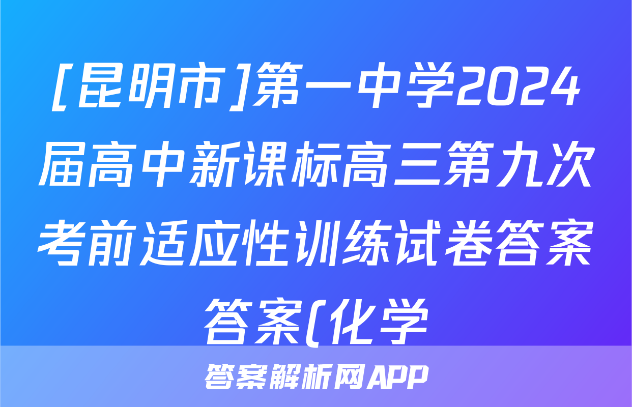 [昆明市]第一中学2024届高中新课标高三第九次考前适应性训练试卷答案答案(化学)正在持续更新,目前大联考答案为大家整理了相关试题及答案,供大家查缺补漏,高效提升成绩。