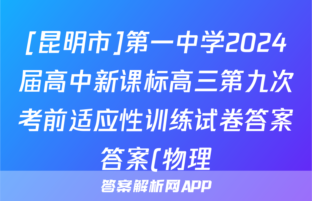 [昆明市]第一中学2024届高中新课标高三第九次考前适应性训练试卷答案答案(物理)正在持续更新,目前大联考答案为大家整理了相关试题及答案,供大家查缺补漏,高效提升成绩。