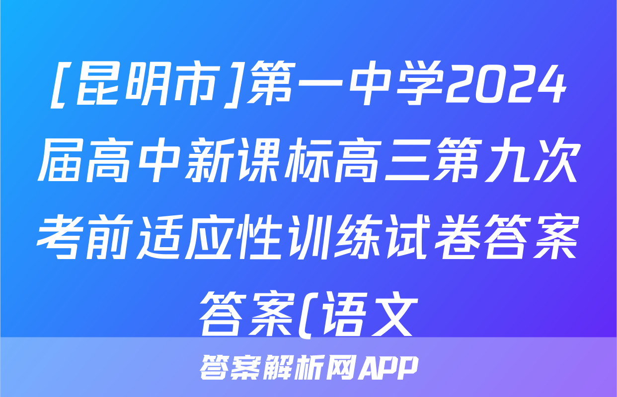 [昆明市]第一中学2024届高中新课标高三第九次考前适应性训练试卷答案答案(语文)正在持续更新,目前大联考答案为大家整理了相关试题及答案,供大家查缺补漏,高效提升成绩。