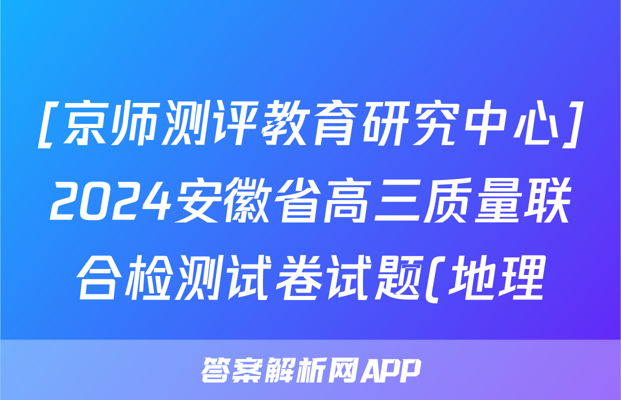 3、[京师测评教育研究中心]2024安徽省高三质量联合检测试卷答案(地理)