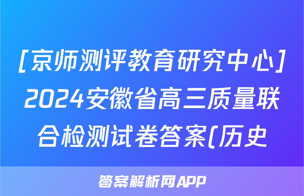 [京师测评教育研究中心]2024安徽省高三质量联合检测试卷答案(历史)