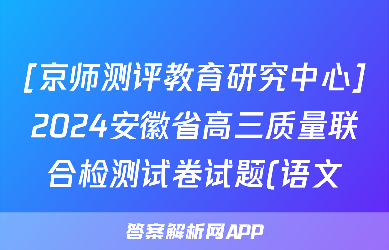 [京师测评教育研究中心]2024安徽省高三质量联合检测试卷试题(语文)