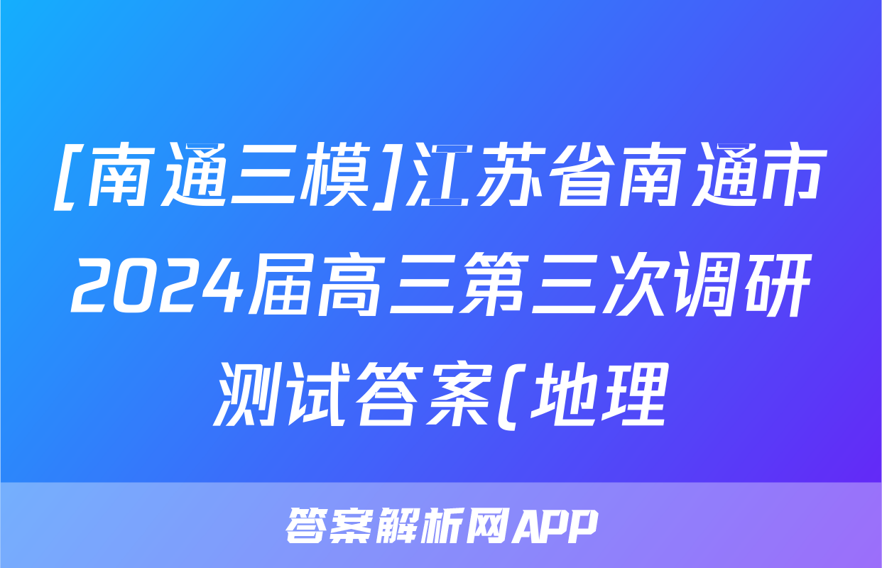 [南通三模]江苏省南通市2024届高三第三次调研测试答案(地理)正在持续更新,目前大联考答案为大家整理了相关试题及答案,供大家查缺补漏,高效提升成绩。