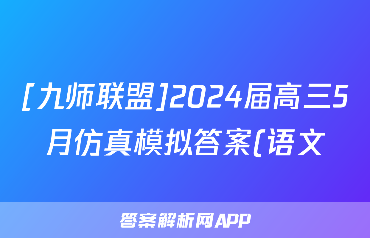[九师联盟]2024届高三5月仿真模拟答案(语文)正在持续更新,目前大联考答案为大家整理了相关试题及答案,供大家查缺补漏,高效提升成绩。