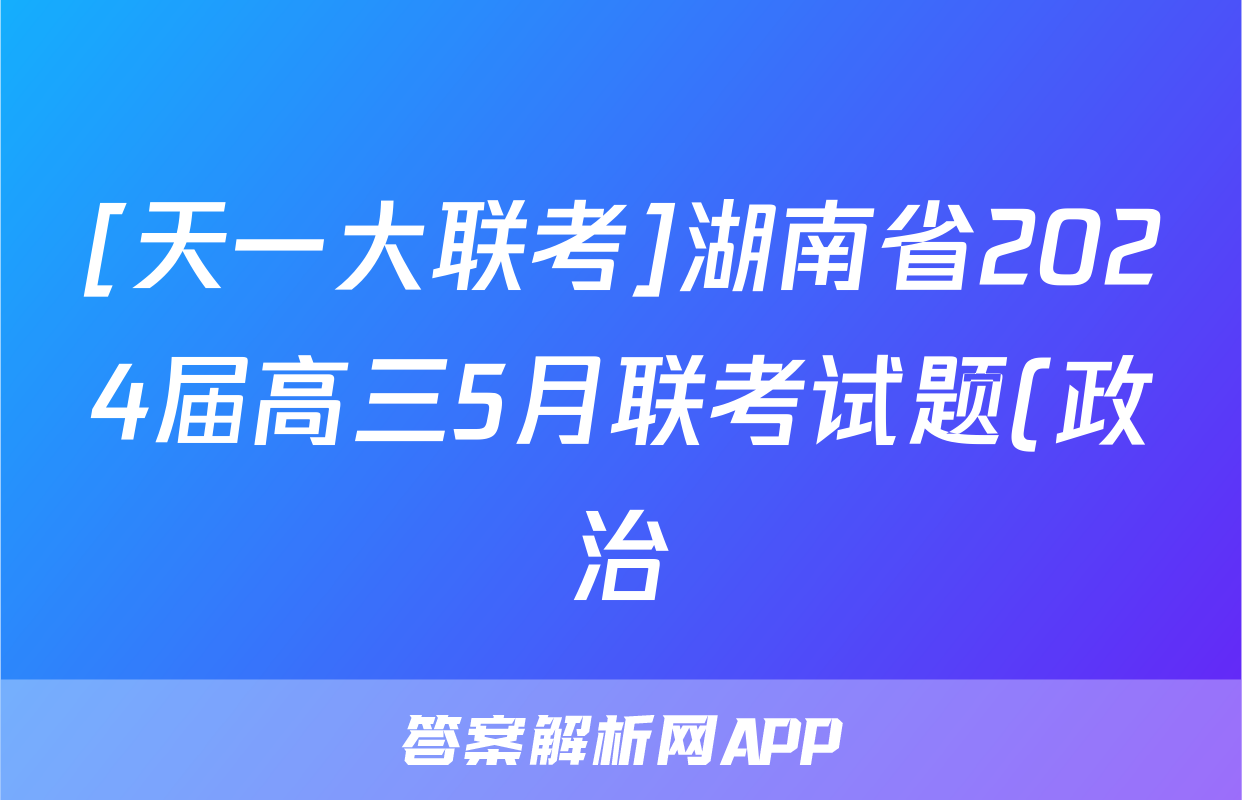 [天一大联考]湖南省2024届高三5月联考试题(政治)正在持续更新,目前大联考答案为大家整理了相关试题及答案,供大家查缺补漏,高效提升成绩。