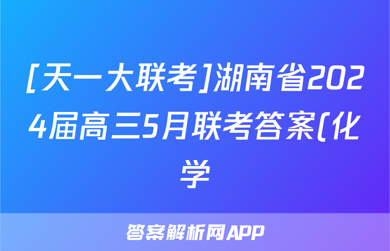 [天一大联考]湖南省2024届高三5月联考答案(化学)正在持续更新,目前大联考答案为大家整理了相关试题及答案,供大家查缺补漏,高效提升成绩。