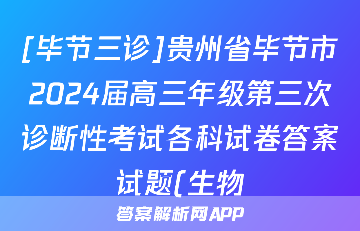 [毕节三诊]贵州省毕节市2024届高三年级第三次诊断性考试各科试卷答案试题(生物)正在持续更新,目前大联考答案为大家整理了相关试题及答案,供大家查缺补漏,高效提升成绩。