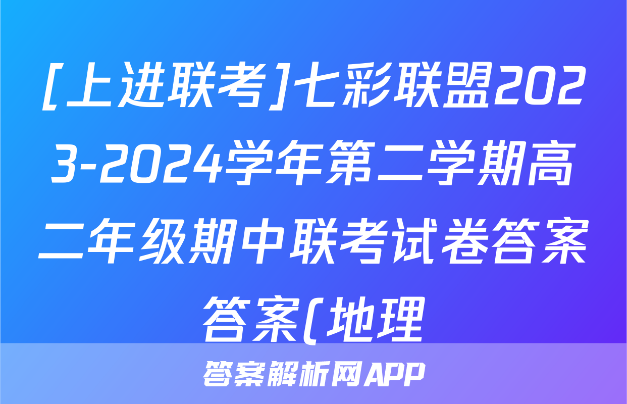 [上进联考]七彩联盟2023-2024学年第二学期高二年级期中联考试卷答案答案(地理)正在持续更新,目前大联考答案为大家整理了相关试题及答案,供大家查缺补漏,高效提升成绩。