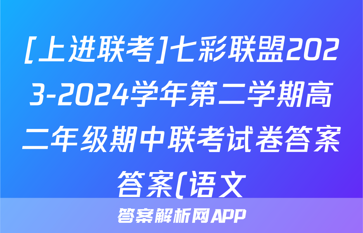 [上进联考]七彩联盟2023-2024学年第二学期高二年级期中联考试卷答案答案(语文)正在持续更新,目前大联考答案为大家整理了相关试题及答案,供大家查缺补漏,高效提升成绩。