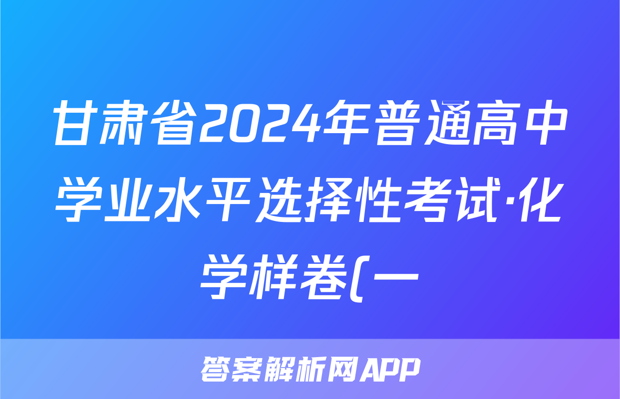 甘肃省2024年普通高中学业水平选择性考试·化学样卷(一)1[24·(新高考)高考样卷·化学·GS]试题正在持续更新,目前大联考答案为大家整理了相关试题及答案,供大家查缺补漏,高效提升成绩。