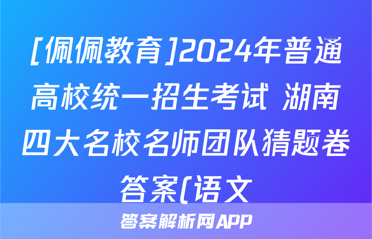 [佩佩教育]2024年普通高校统一招生考试 湖南四大名校名师团队猜题卷答案(语文)正在持续更新,目前大联考答案为大家整理了相关试题及答案,供大家查缺补漏,高效提升成绩。